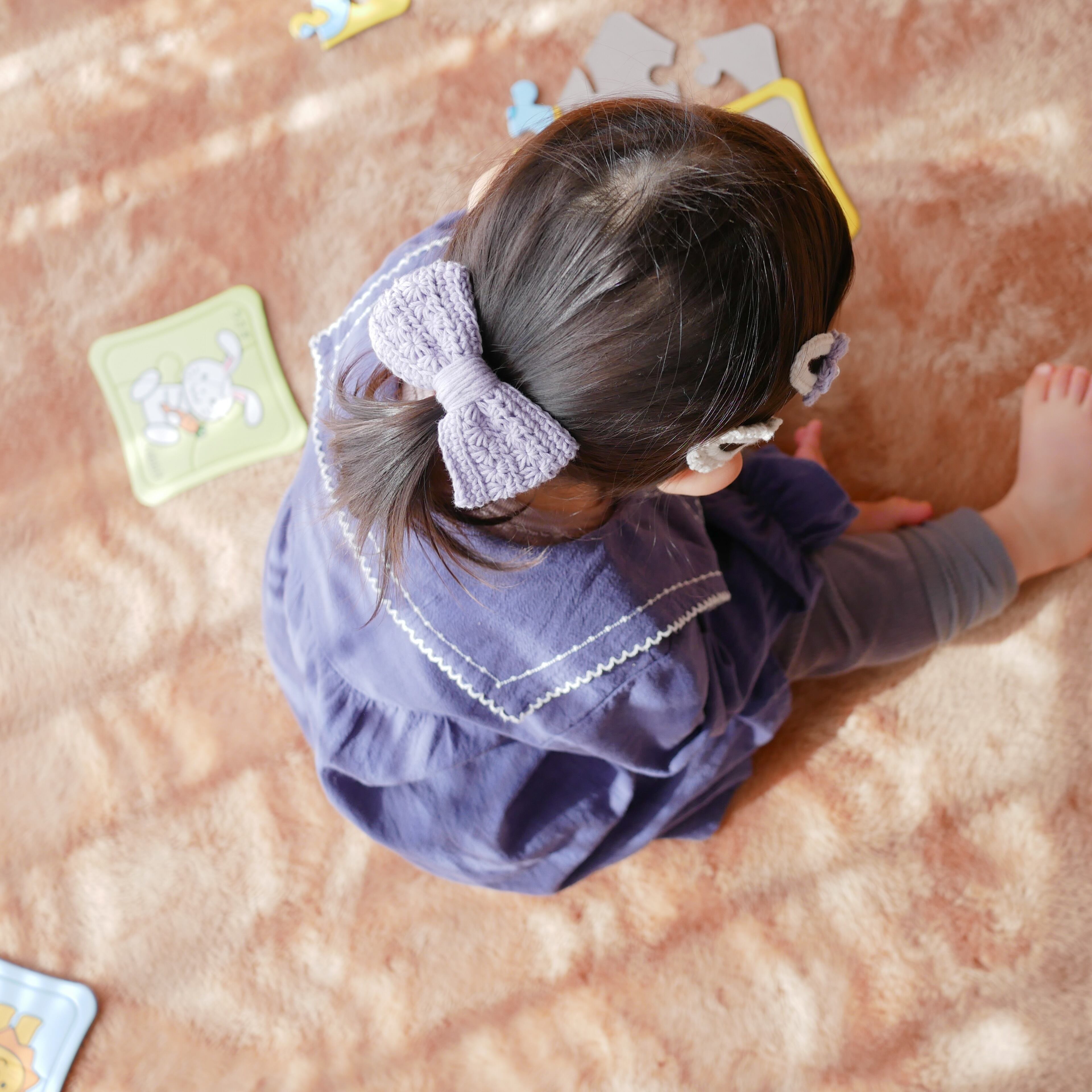 手編み リボン お花模様 親子リンク ヘアアクセサリー ヘアゴム キッズ ママ プレゼント 推し活