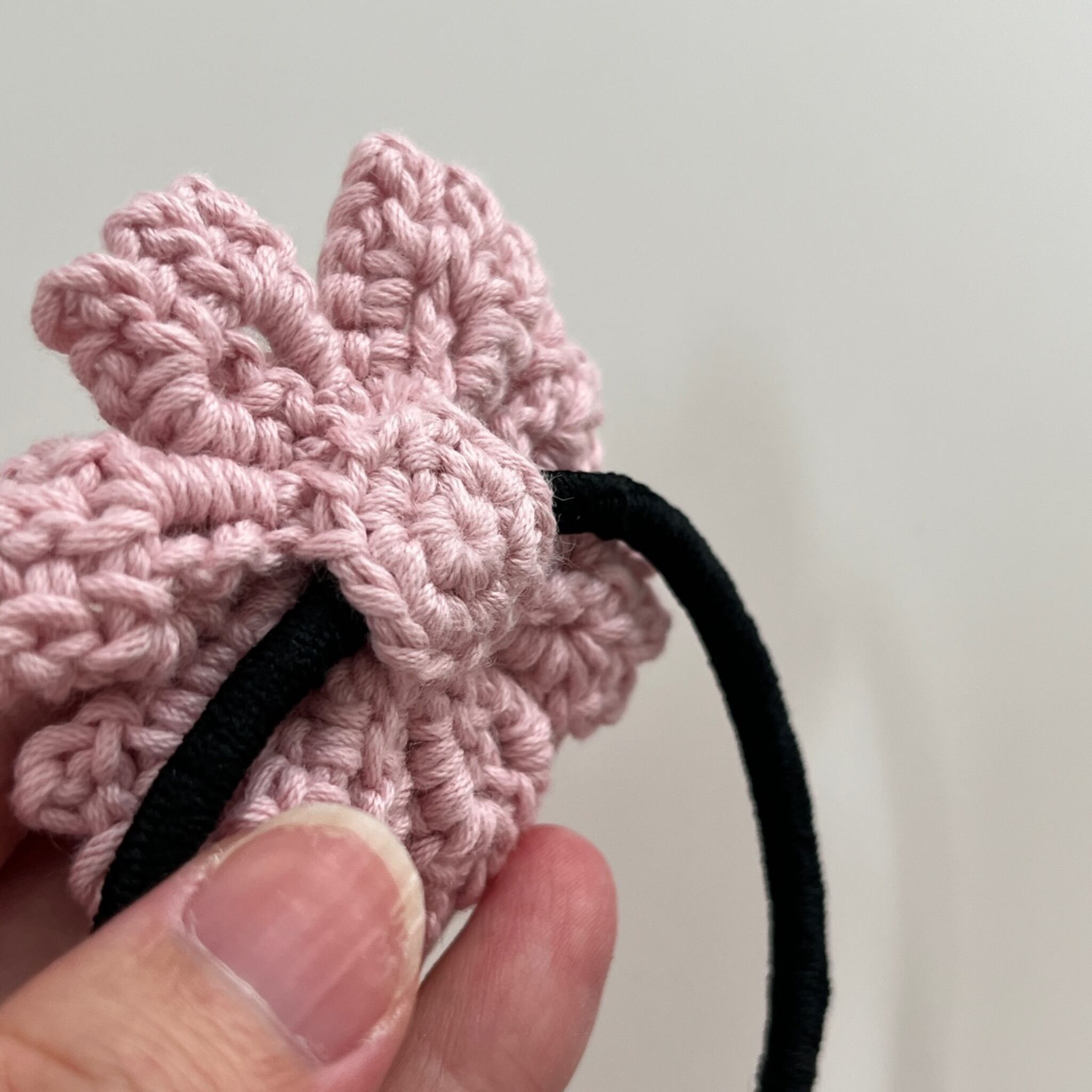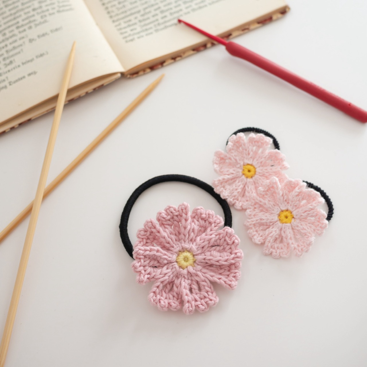 手編み コスモス 秋桜 秋 お花 親子リンク ヘアアクセサリー ヘアゴム キッズ プレゼント