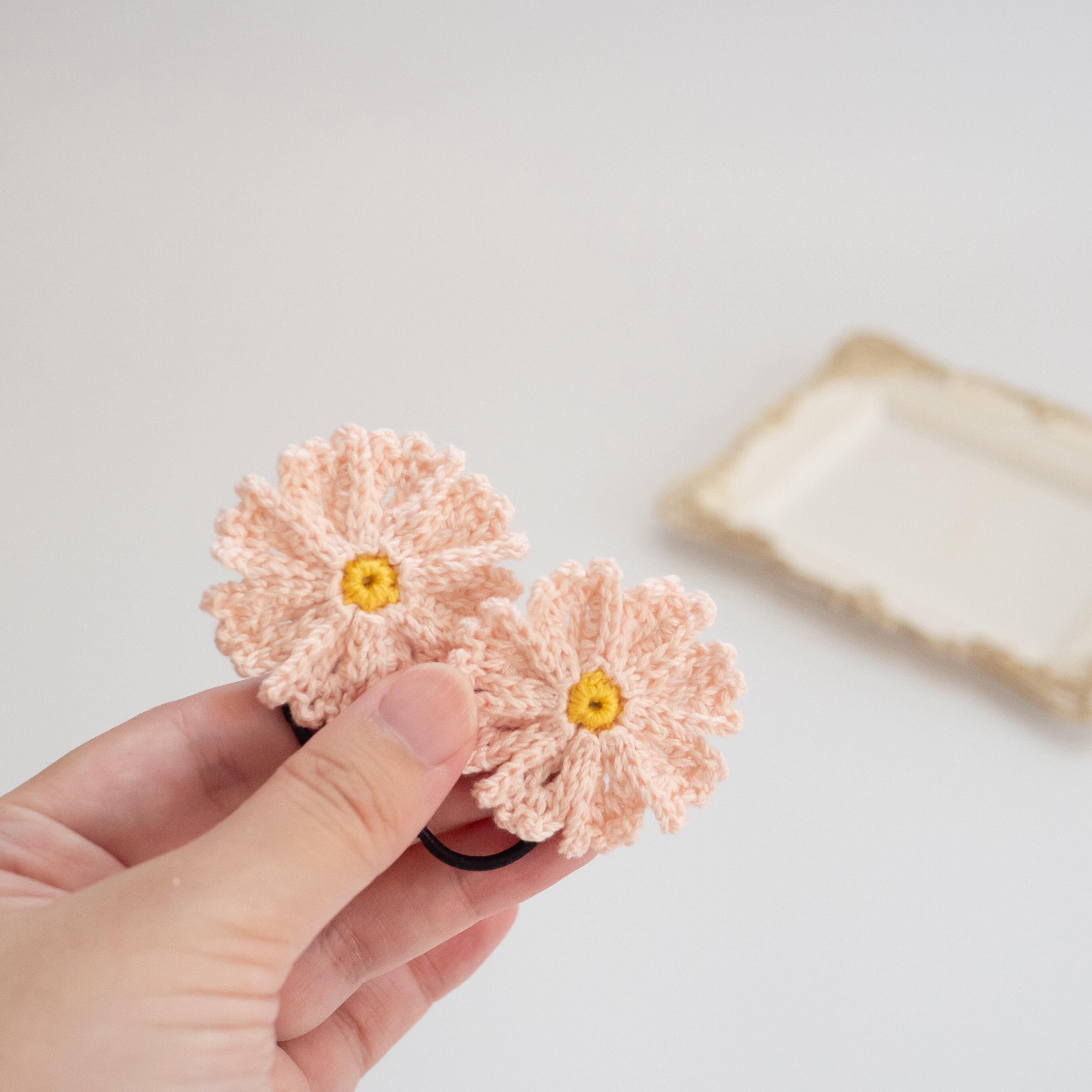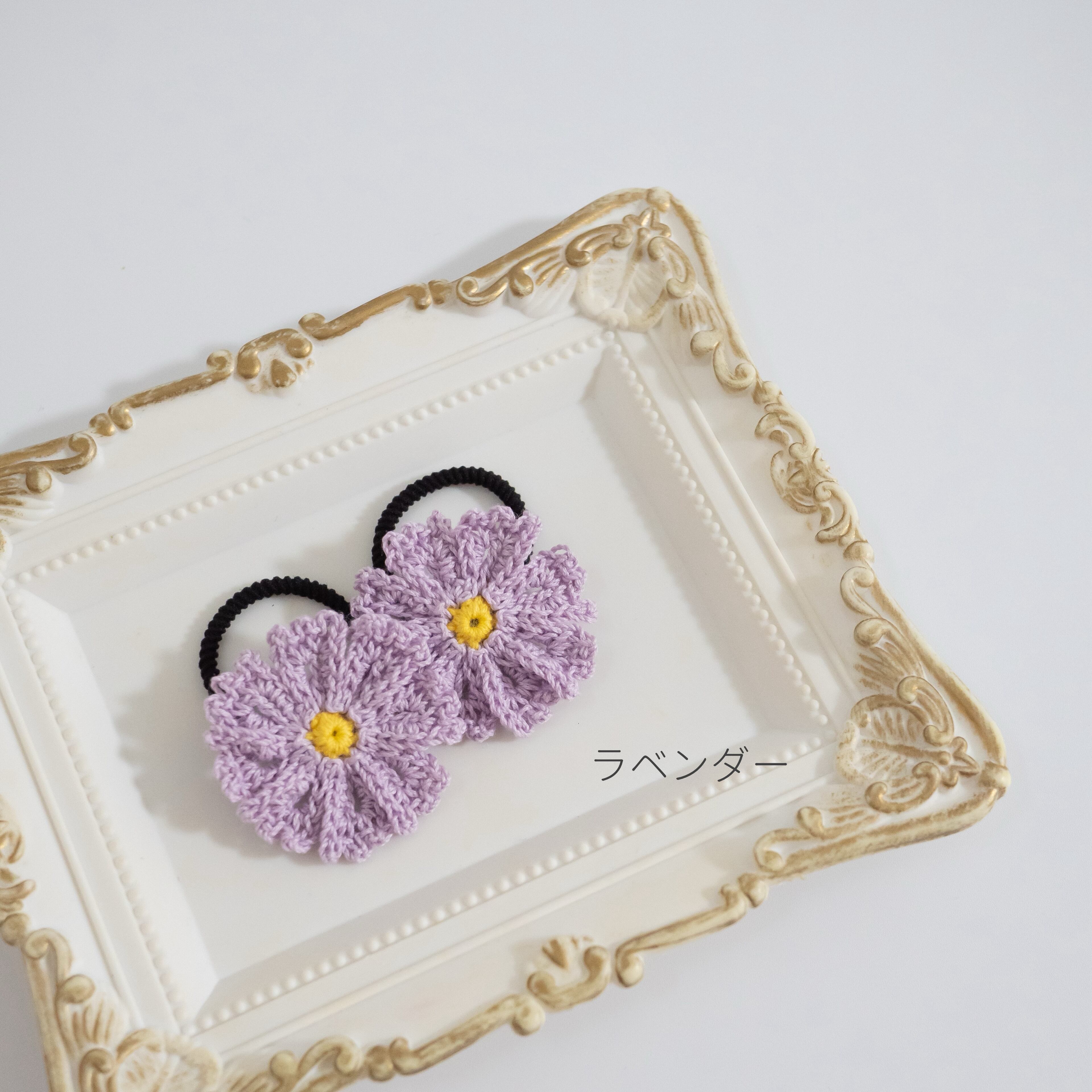 手編み コスモス 秋桜 秋 お花 親子リンク ヘアアクセサリー ヘアゴム キッズ ベビー 赤ちゃん プレゼント