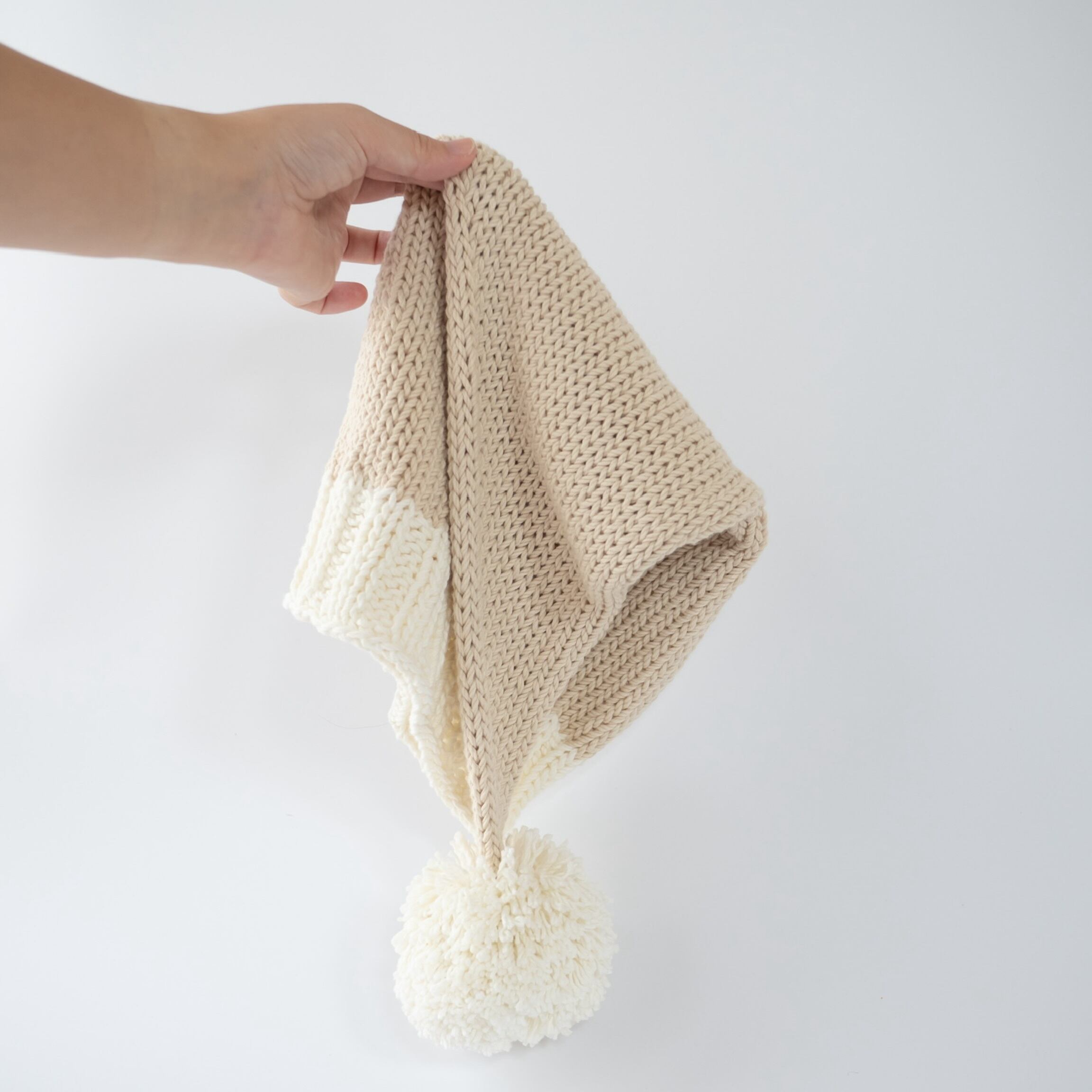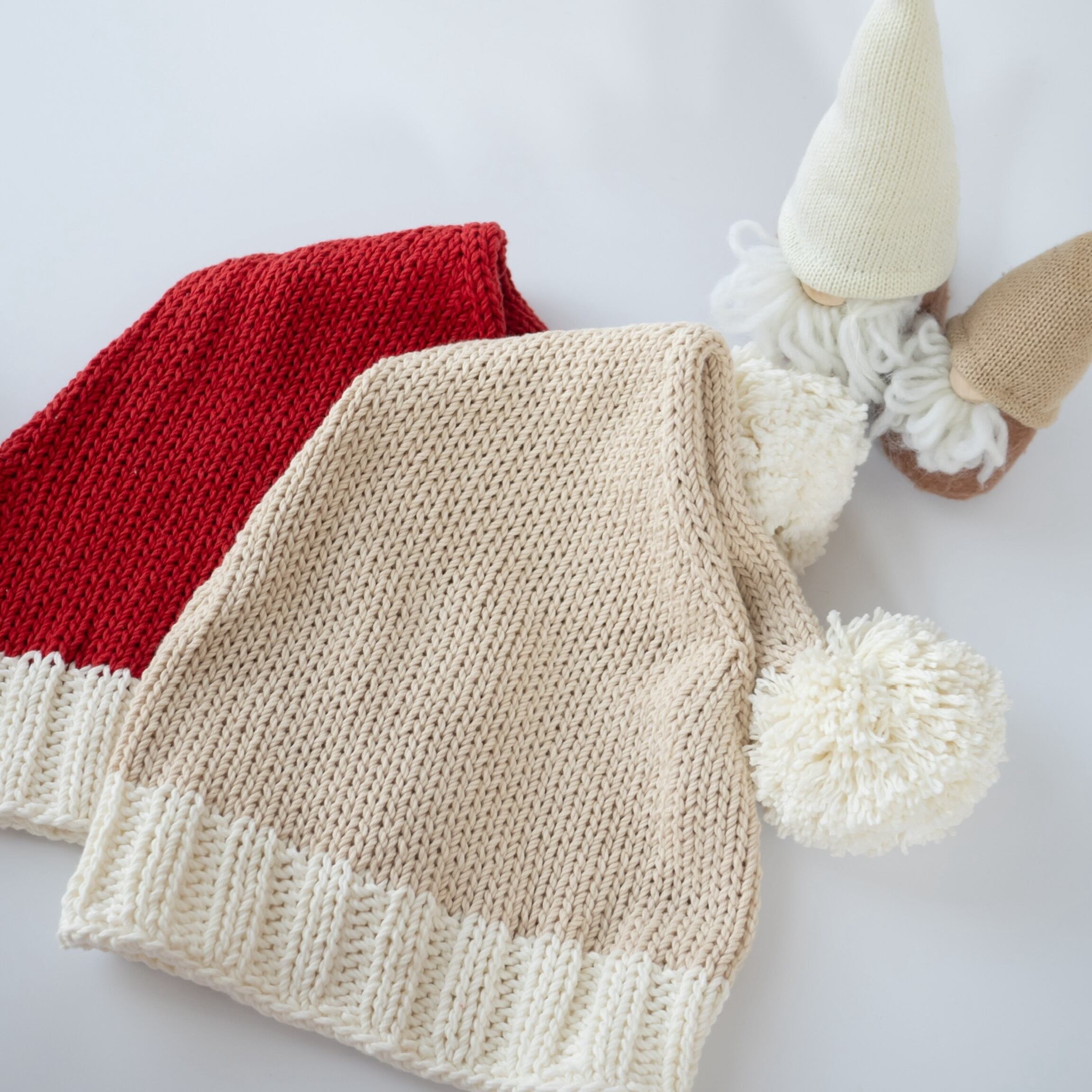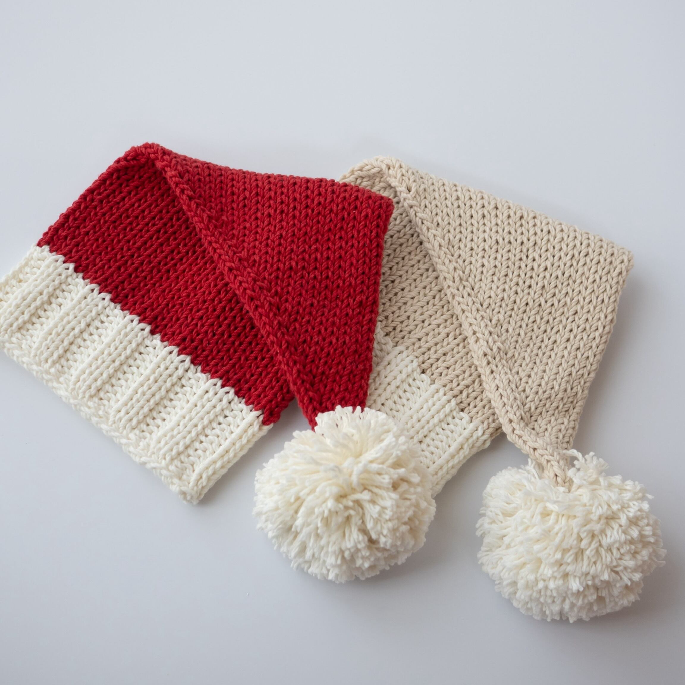 クリスマス パーティー サンタ帽 小人帽子 淡色 くすみ 棒針編み 編み物 キッズ ベビー 新生児 ニューボーン 赤ちゃん 子ども 撮影小物 おうちフォト ママコーデ 親子リンク 冬 コットン糸