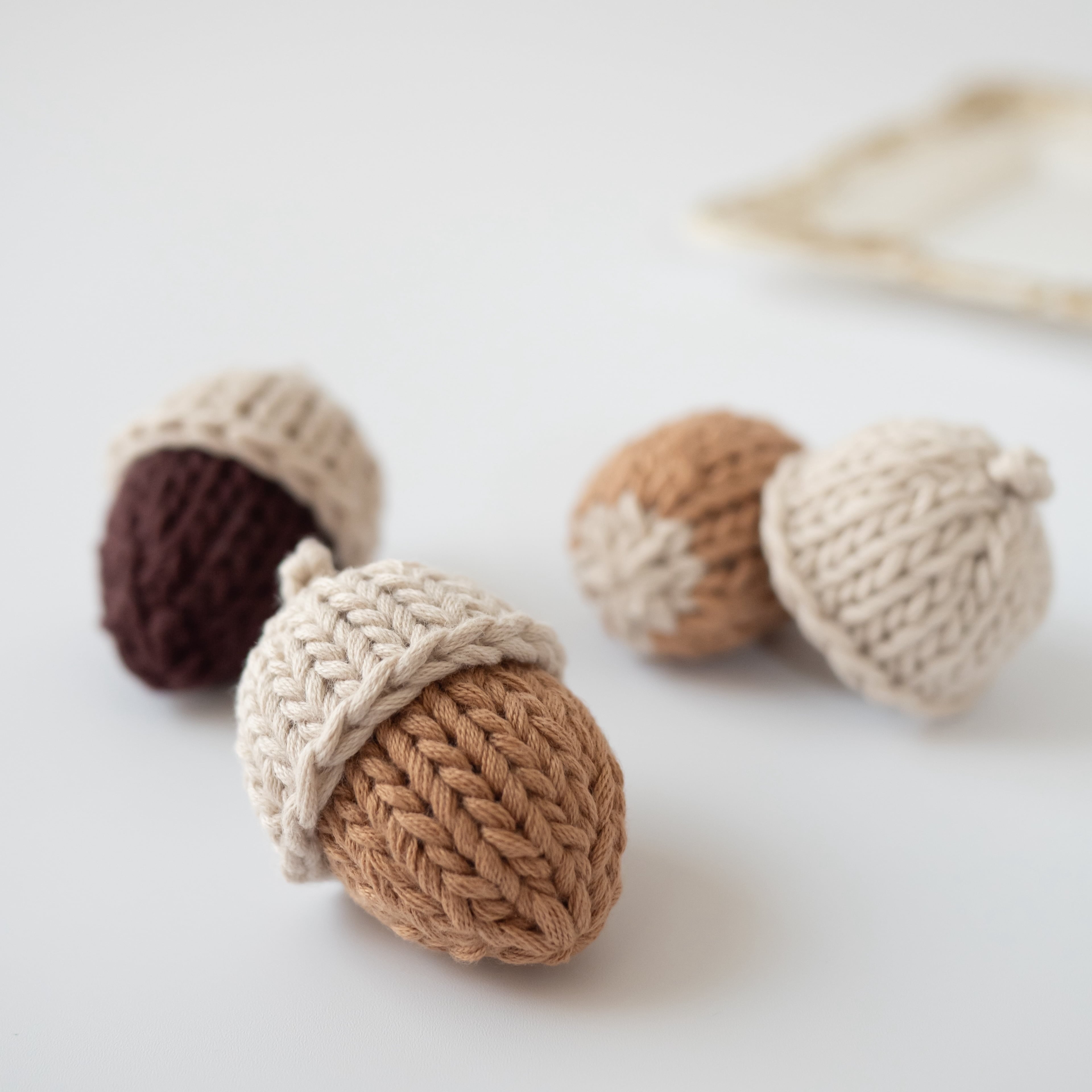子どもが大好きな、どんぐりの形のあみぐるみです。